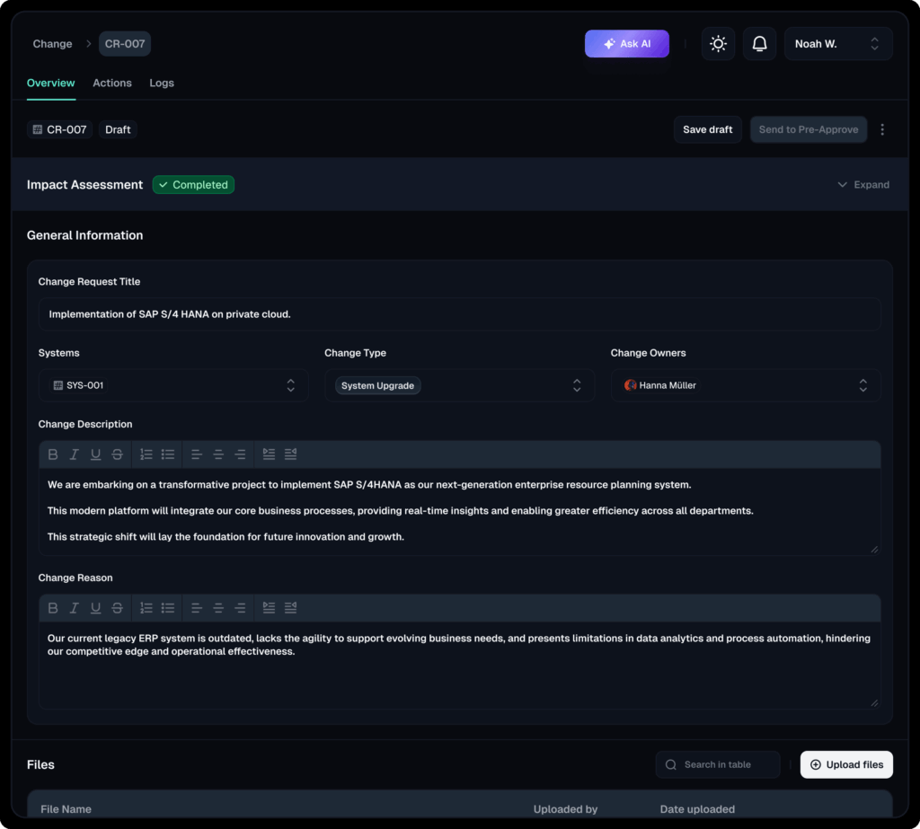 Offers a centralized platform that streamlines the entire change lifecycle, improving traceability, collaboration and regulatory compliance.